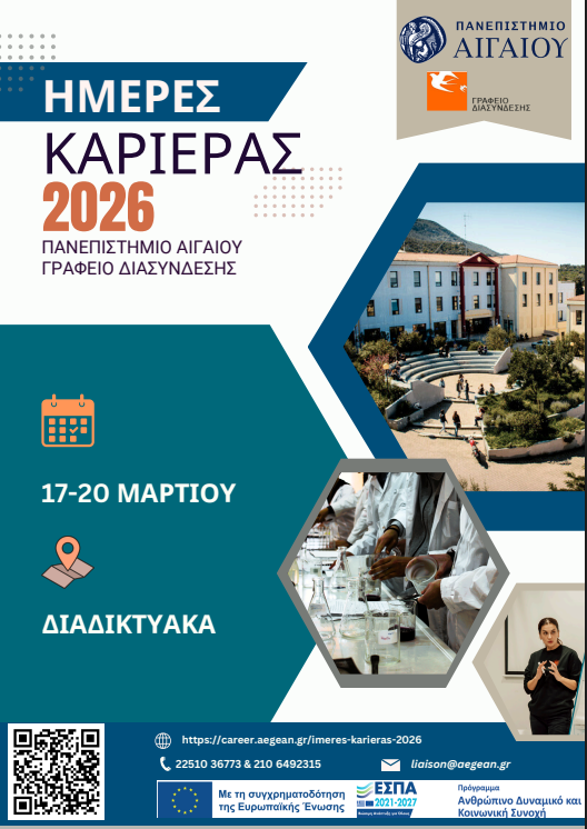 Ημέρες Καριέρας 2026 από το Πανεπιστήμιο Αιγαίου «Σταδιοδρομία χωρίς περιορισμούς!» | Πανεπιστήμιο Αιγαίου