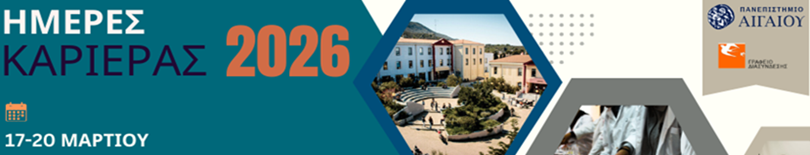 Ημέρες Καριέρας 2026» από το Πανεπιστήμιο Αιγαίου «Σταδιοδρομία χωρίς περιορισμούς!»-17–20 Μαρτίου 2026 | Διαδικτυακή Διοργάνωση | Πανεπιστήμιο Αιγαίου