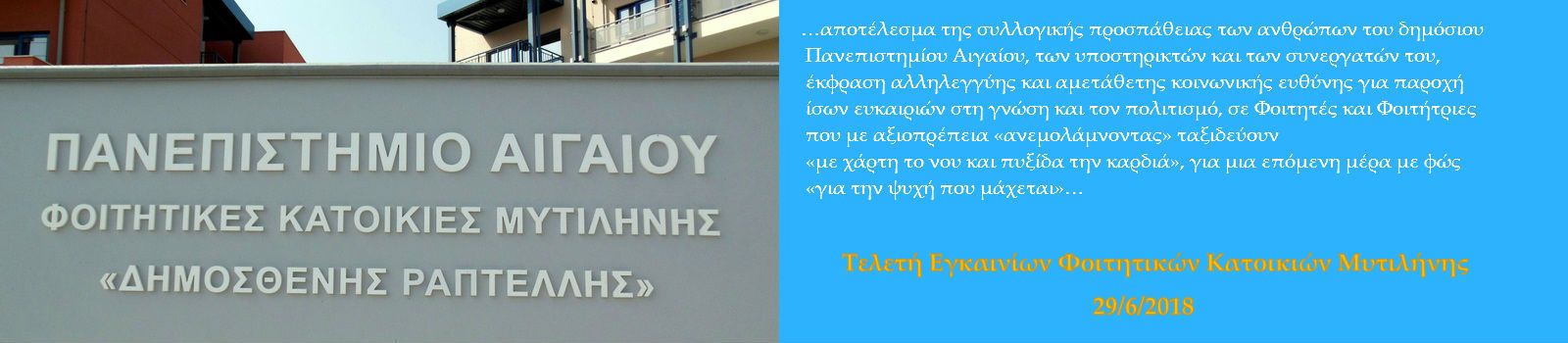. Κατηγορία Ακαδημαϊκές Τελετές Τοποθεσία Λέσβος Χώρος εκδήλωσης Φοιτητικές Κατοικίες, Καλλιθέα, Μυτιλήνη Ημερομηνία Παρασκευή, 29 Ιούνιος, 2018 - 18:00 Σχετικά αρχεία Πρόσκληση εγκαινίων Εικόνες