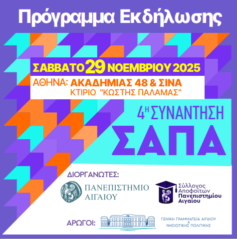 Ο Σύλλογος Αποφοίτων του Πανεπιστημίου Αιγαίου (ΣΑΠΑ) διοργανώνει  την 4η συνάντησή του,